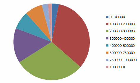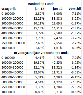 Te koop op Funda naar prijsklasse op 1 juni 2012: