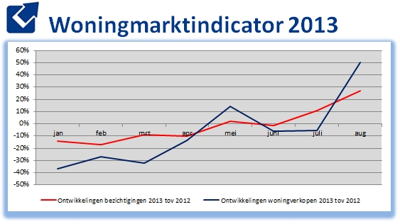 Mij biedt het bericht niet heel veel houvast eigenlijk. Ik heb het bericht van vorig jaar er bij gepakt, toen werd gesproken van 4.600 verkopen tegen 11.500 nu. Dat zou betekenen dat het aantal verkopen nu zelfs 150% zou zijn gestegen. Navraag leert dat men gaandeweg is afgestapt van het door NVM verkochte woningen naar het in de totale markt verkochte aantal. Dat maakt rekenen lastig, omdat NVM zelf bijvoorbeeld nogal fluctueert in het marktaandeel dat ze rapporteert in haar kwartaalberichten. Het is een wat ‘vrije’ variabele die eea moeilijk te controleren maakt. Maar ook als ik de 78% hanteer, zouden er dus vorig jaar in augustus zo’n 5.800 woningen zijn verkocht en zou dat nogsteeds een stijging van bijna 100% betekenen.